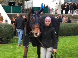 Es war schon eine beeindruckende Leistung, die unser Fuego Del Amor in einem quantitativ und qualitativ stark besetzten Rennen in Chantilly gezeigt hat. Der Wallach aus dem Besitz von Michi Reichstein ist schon so etwas wie ein Stallmaskottchen und so ist es umso schöner, dass er im Alter von neun Jahren nach nicht optimalen Rennverlauf ein Handicap dieser Art gewinnen konnte. Unter Mickaël Barzalona musste der Wallach im Schlussbogen einige Meter mehr in Kauf nehmen, hatte am Ende aber trotzdem die Nase vorn. „Fuego“ hat deutlich gezeigt, dass er gutes Geläuf oder PSF bevorzugt und ist somit auch für seinen Start in Dieppe entschuldigt, denn dort war der Boden sehr klebrig. Wir sagen „Hut ab, Fuego“ und freuen uns auf die nächsten Starts in Frankreich.