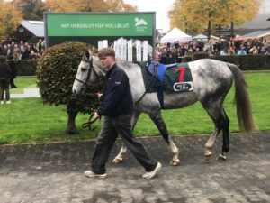 Beim vorletzten Renntag des Jahres in Köln waren auch wir mit einem Starter vertreten. Imaran kam im Ausgleich II über 2200 Meter an den Ablauf und bekam dabei von Miki Cadeddu einen idealen Rennverlauf serviert. Dies hätten wir uns für den sympathischen Schimmel während dieser Saison so oft gewünscht, leider war dies aber mindestens dreimal nicht der Fall, obwohl Imaran in Topform gewesen war. So war es natürlich schade, dass der siebenjährige Wallach eigentlich schon über den sogenannten “Berg” zu sein schien. Auch wenn uns dies im Vorfeld klar war, wollten wir einen Start mit Andreas Hackers Jukebox Jury-Sohn probieren, denn das Rennen passte perfekt und er zeigte sich im Training in guter Verfassung. In Köln war dann aber leider doch nicht viel möglich und Imaran geht nun in seine wohlverdiente Winterpause.